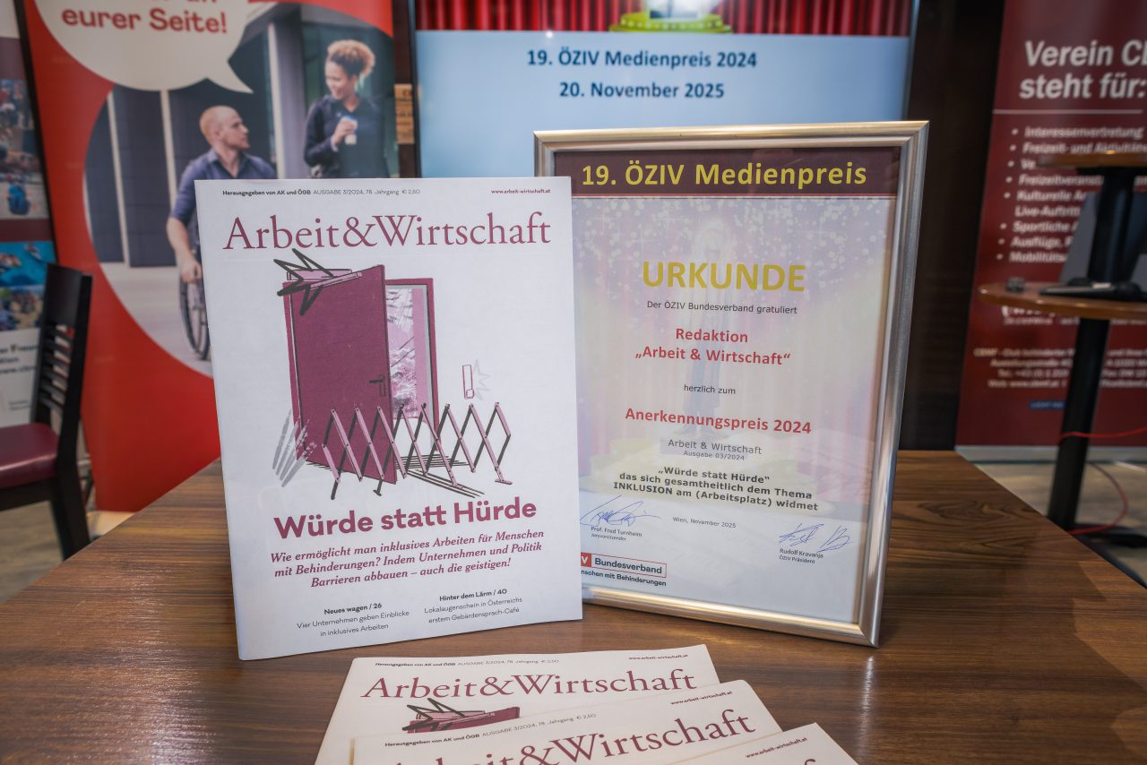 Arbeit&Wirtschaft erhält ÖZIV-Anerkennungspreis für die Ausgabe „Würde statt Hürde“